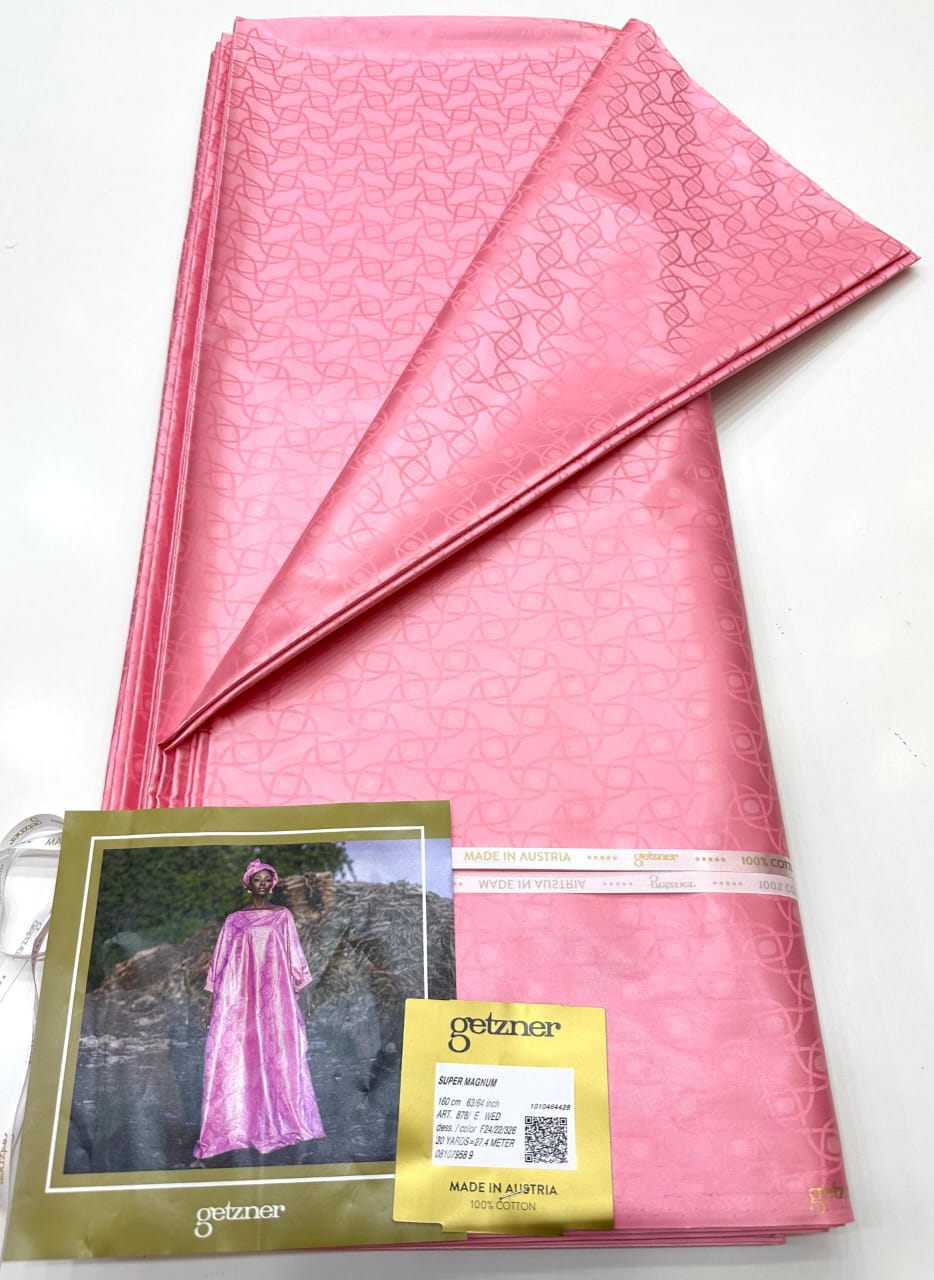 Experience the unmatched quality of authentic Getzner Bazin Riche Super Magnum fabric. This 100% cotton damask features a premium, vibrant sheen and a luxurious feel, perfect for creating stunning, high-end traditional and contemporary garments. Made in Austria.
