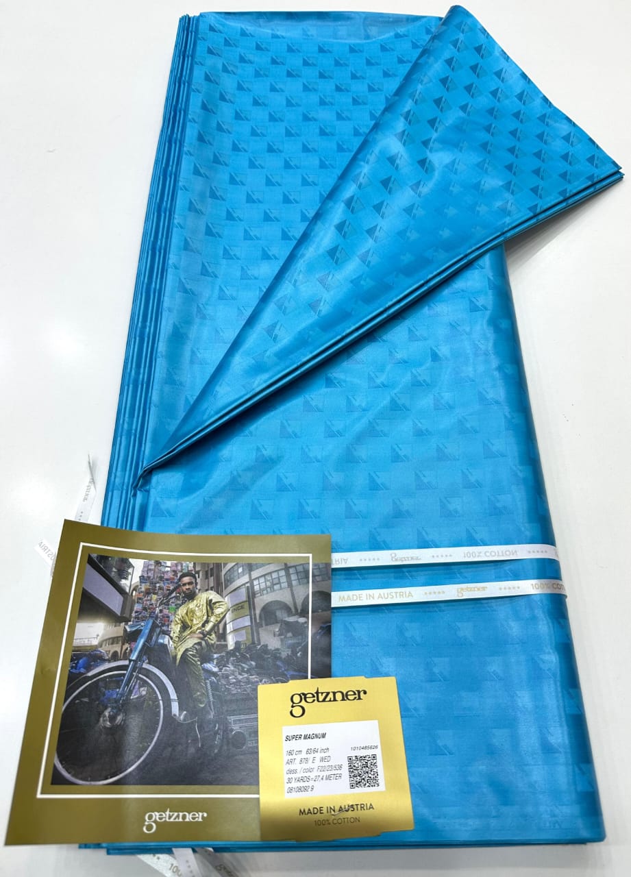 Elevate your wardrobe with this exquisite Super Magnum Bazin, renowned globally for its superior finish, durability, and vibrant colorfastness. The beautiful [Specific Color] shade is interwoven with a sophisticated [Design/Pattern] that subtly catches the light, giving your attire a regal and distinguished appearance.