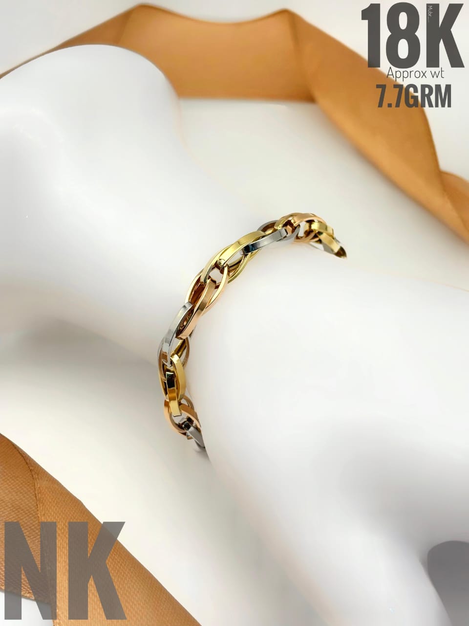 Luxurious Tri-Color Flat Curb Chain Bracelet | 18K Gold – 7.7 GRM