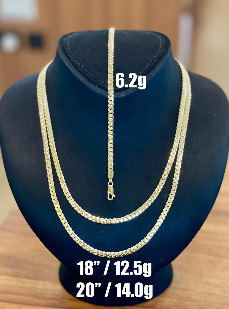 This modern chain design lays perfectly flat against the skin, offering maximum visual impact with a comfortable weight. The tightly connected, polished links create a seamless, ribbon-like appearance that reflects light brilliantly. It’s an excellent chain for stacking or wearing as a striking solo piece.